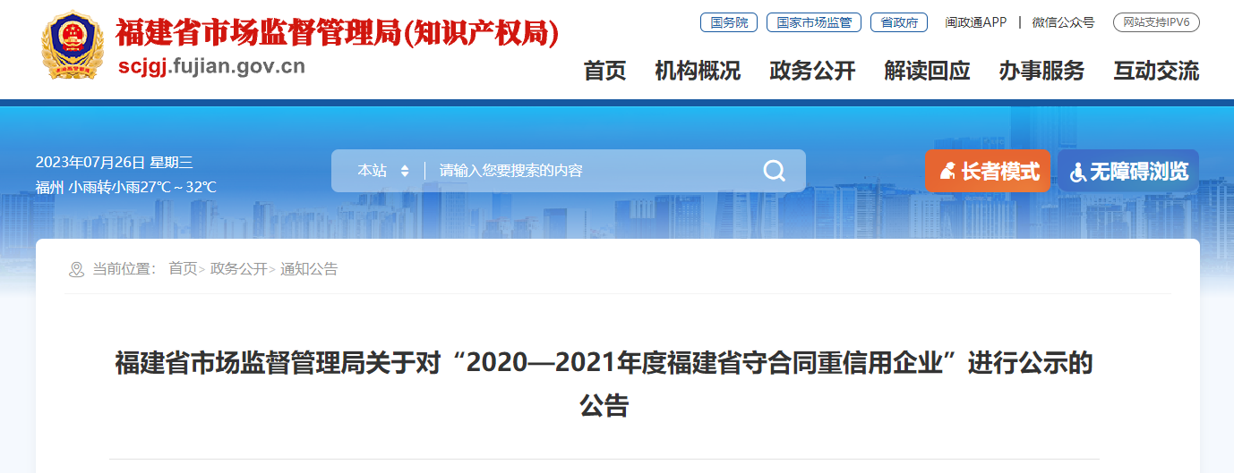 恭喜建融集团荣获?020?021年度福建省守合同重信用企业?/h3>